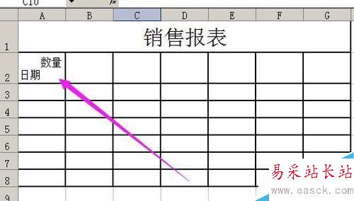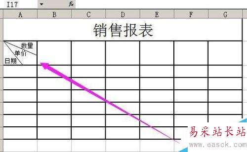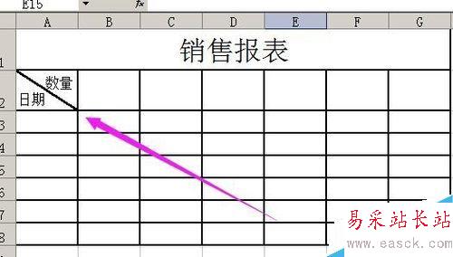 小編在這里同樣用“銷售報表”的表格來作示范:單元格里加上2條斜線。