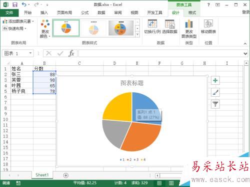 6、點擊確定按鈕后,在Excel工作表中就插入了“餅圖”圖表。如圖所示;