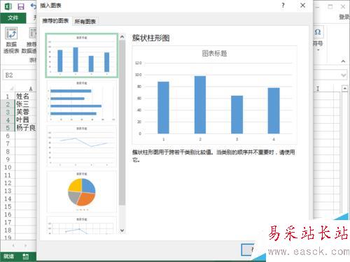 4、點擊“推薦的圖標”選項后,這個時候會打開“插入圖表”對話框。如圖所示;
