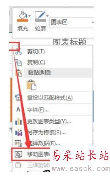 1、當然,如果要將圖表移動到另一個sheet中去,要借助其他操作。選中圖表之后,在圖表上右鍵選擇“移動圖表”選項。