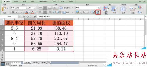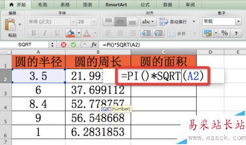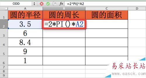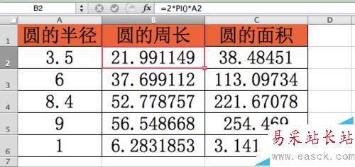 Excel怎么使用PI函數計算圓周長和面積?
