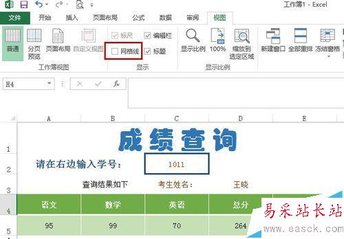 8、美觀設計:去除網格線。點擊“視圖”選項卡,將“網格線”前方框為未選中狀態即可。