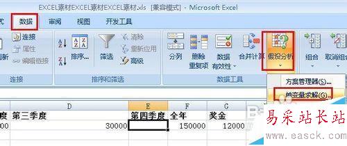 5、點擊菜單欄上的:數據--假設分析--單變量求解