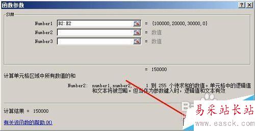 3、在彈出的對話框中,輸入參數如圖所示,也就是對這四個季度求和