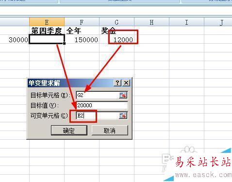 公司規定,銷售額的百分之八作為獎金,為了拿到20000的獎金,我們第四季度的銷售額應該達到多少呢?這里我們就是在給第四季度制定銷售目標,具體的方法如下: