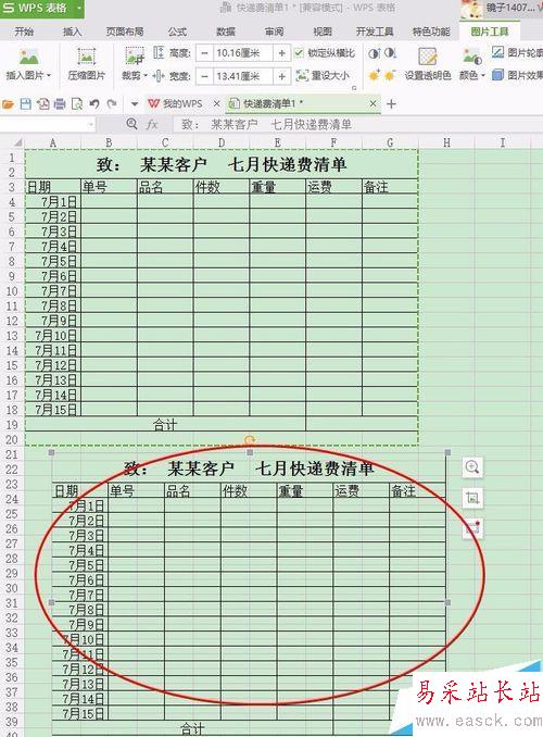 4、這樣就可以看到粘貼成圖片的格式了,第一個表格為表格,第二個表格則是圖片,圖片用紅色圓圈畫出來了,圖片如下: