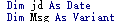 3、我們聲明jd變量為日期類型,這里聲明Msg變量并沒有給出具體類型,所以vba會默認為variant類型。