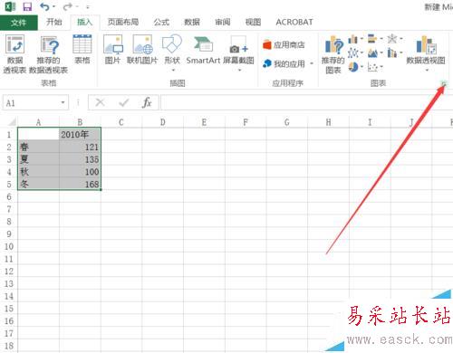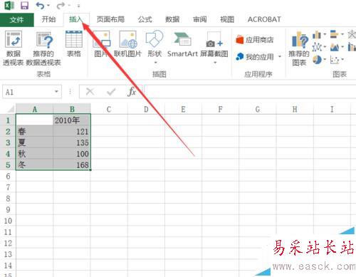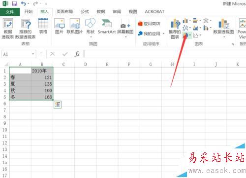 2、然后在菜單欄的“插入”選項(xiàng)卡中“圖表”組中的任意圖表類型即可進(jìn)行對(duì)圖表的插入。