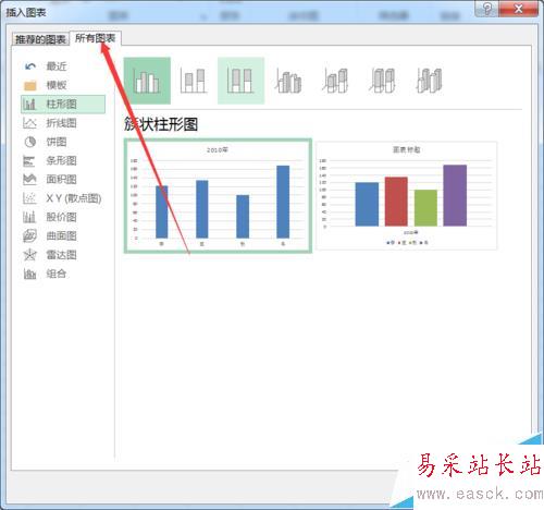 6、當(dāng)然,如果需要選擇其他圖,選擇上方所有圖表。