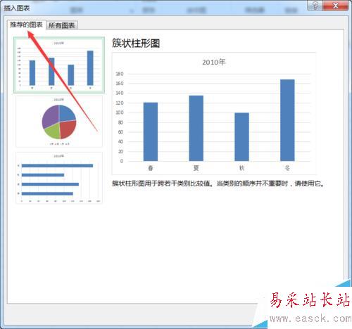 5、此時(shí)彈出對(duì)話框,我們可以在推薦的圖表中選擇相應(yīng)的圖表。