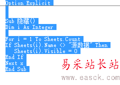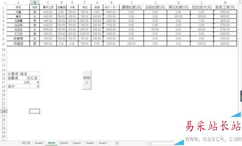 6、制作一個按鈕并指定這個宏,我們運行一下,可以看到除了源數據工作表外,其他的工作表都隱藏起來了,如果需要回復,只需要將宏代碼中visible的屬性值0修改為1或者true然后運行即可。