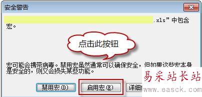 在宏的安全性等級設置成功后,再次翻開Excel程序文件時,會呈現下圖所示信息框,此刻點擊“啟用宏”按鈕即可使本程序正常運轉: