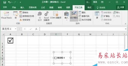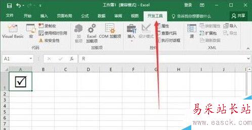 8、另外還可以通過開發(fā)工具選項卡,插入打勾方框。在打開的Excel工作薄窗口中,打開菜單欄的“開發(fā)工具”菜單選項卡(如沒有開發(fā)工具選項卡在Excel選項中添加即可)。如圖所示;