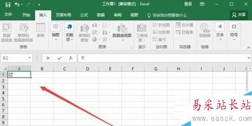 7、關(guān)閉符號對話框,返回到Excel工作表中,即可看到插入的打勾方框。如圖所示;