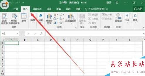 2、在打開的Excel工作薄窗口中,打開菜單欄的“插入”菜單選項卡。如圖所示;