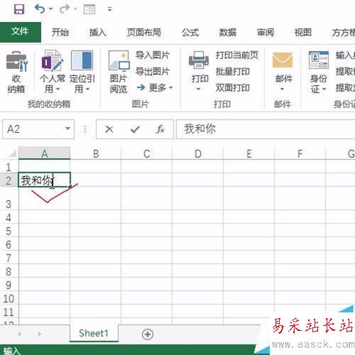1、首先打開excel表格并輸入我和你,如下圖所示: