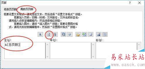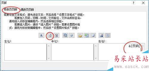 4、單擊自定義頁腳按鈕,打開頁腳設置窗口。