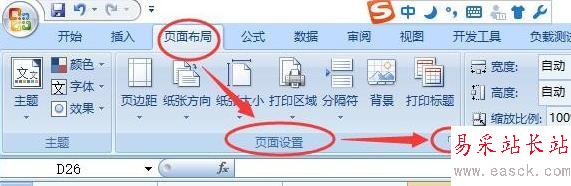 2、在頁面布局選項卡中,找到頁面設置,點擊右下角的按鈕,進入頁面設置窗口。