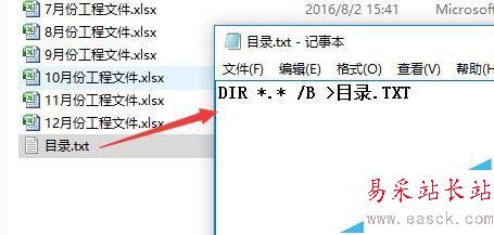 2、在工程文件夾內,新建一個記事本文檔,輸入下面的內容后保存:DIR *.* /B >目錄.TXT