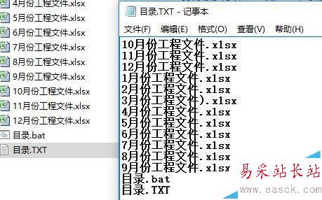 4、雙擊剛才的bat文件,就可以生成一個目錄.txt文件,這樣可以將這個記事本內容拷貝到excel中了。