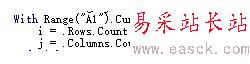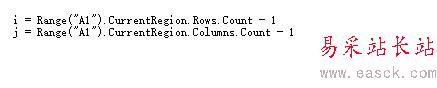 3、這里with是簡化代碼的寫法,讀取了當前活動單元格的區域,并將行列分別賦值為I和J變量-1。