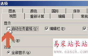 5、在“視圖”選項卡中,取消勾選“啟動任務窗格”項。