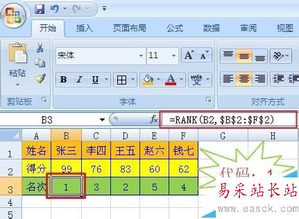 當然,我們也可以把代碼寫成代碼2的樣式"=rank(b2,b$2:b$6)"和上面的區別在于,該代碼只鎖定了“2”和"6",沒有鎖定列"b".這是我們一個公式多行(列)排序的關鍵,以下的講解中我們采用第二種代碼方式。