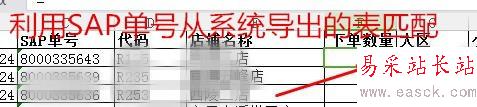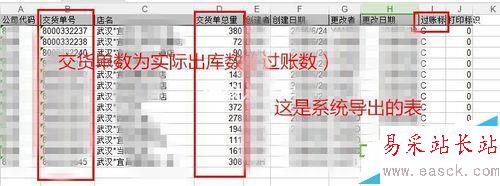 2、表二為系統過賬的表,是從SAP系統導出來的表,里面有單號,店鋪名,交貨單數量(實際出庫數量),以及過賬標識。