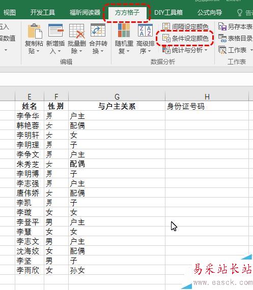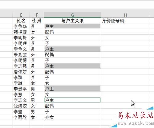 1、有如圖數(shù)據(jù),需要將所有戶主所在的行填充背景顏色。通常情況下我們會使用篩選,填充顏色,今天給大家介紹一個使用工具快速填充顏色的方法。