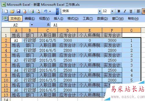 1、工資表如圖,在輔助列輸入1,2,3,4……