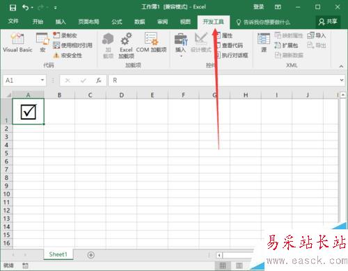 8、另外還可以通過開發(fā)工具選項卡,插入打勾方框。在打開的Excel工作薄窗口中,打開菜單欄的“開發(fā)工具”菜單選項卡(如沒有開發(fā)工具選項卡在Excel選項中添加即可)。如圖所示;