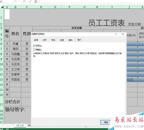 4、方法是在輸出頁面上全選工作表,然后設置單元格格式。在保護標簽下,勾選鎖定選項,然后點擊確定。