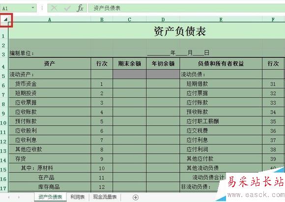 2、單擊左上角,選取整個(gè)工作簿(表單),在工作簿(表單)中右鍵單擊鼠標(biāo),選擇“復(fù)制”。