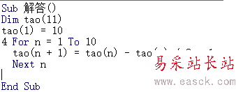5、繼續(xù)編程,判斷tao(10),如果是10,就輸出tao(1)的數(shù)字,否則tao(1)逐漸變大,再去循環(huán)語(yǔ)句,計(jì)算tao(10)。