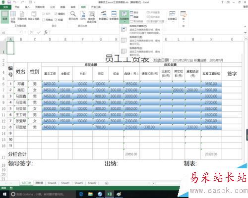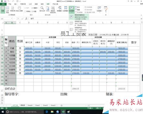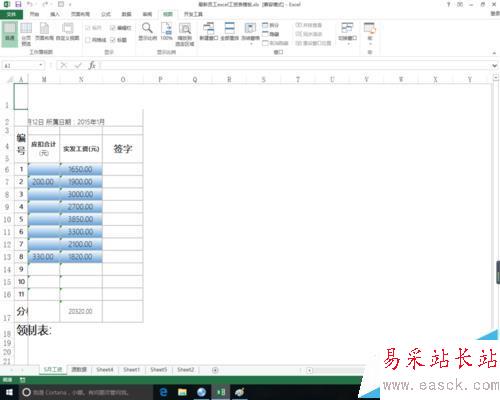 4、可是當我們的標題欄不在首列的時候,我們該怎么做,選擇需要凍結的區域范圍,然后點擊凍結拆分窗口,我們來看看效果。