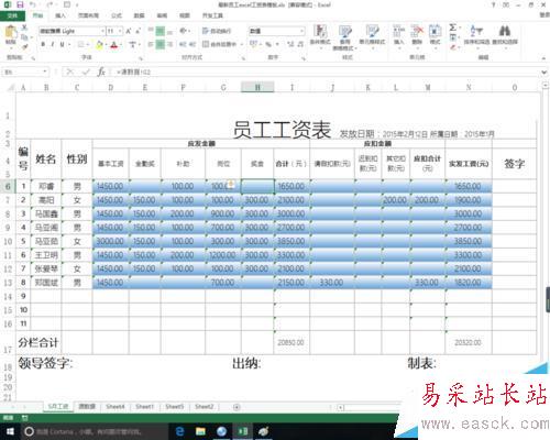 3、凍結了首列后,表格的表現效果如圖,當移動表格時首列會固定顯示,而不會隨著移動表格而消失,便于核對標題與數據。