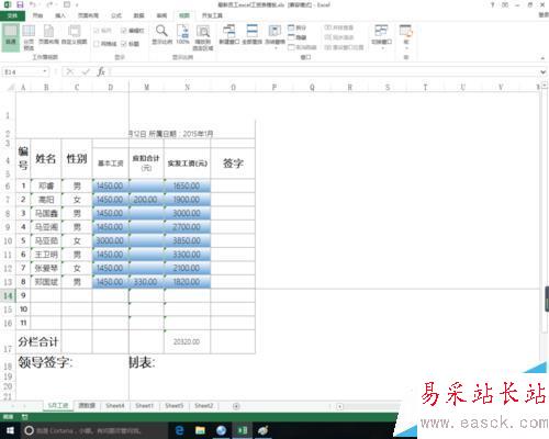 6、這是因為操作步驟錯了,凍結拆分窗口不是選擇區域范圍,而是凍結當前所選單元格左側列,我們實際操作一下。選擇e14單元格,然后凍結拆分窗口,移動表格會發現,d列之前的窗口都被凍結住了。大家理解了吧。