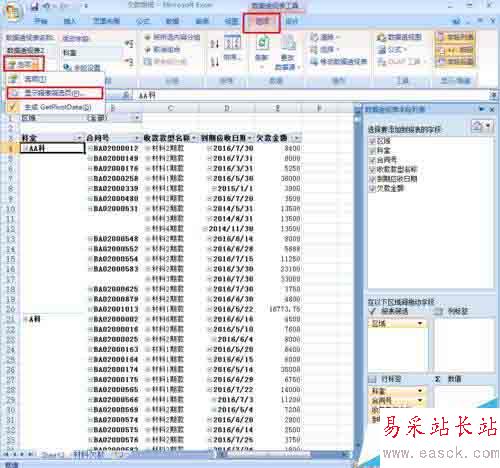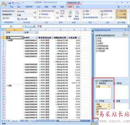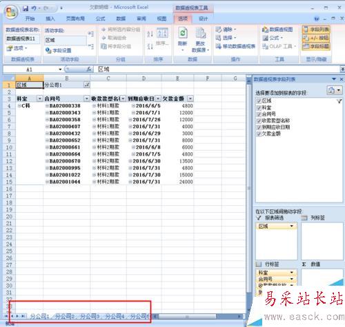 在平時處理文檔工作中,我們會遇到一個excel表格中數據量很大,要將其根據其中一個條件將其分成很多個小文件,如果一個個篩選粘貼,工作量實在太大,我們可以運用數據透視表來完成。下面我用一個簡單的例子給大家分享一下,例子為分公司欠款匯總表得到每個分公司的欠款明細表。