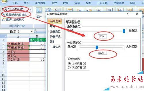 7、兩次單擊下半年完成系列,設置分類間距為200%