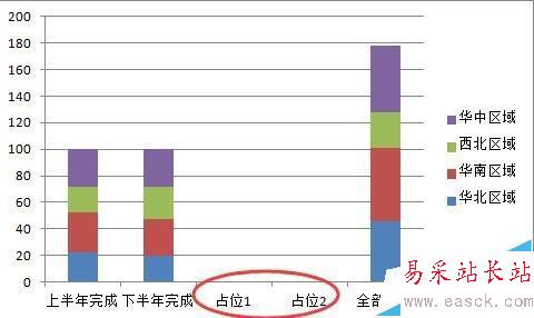 8、單擊網格線,按Delete鍵刪除。單擊次要縱坐標軸,按Delete鍵刪除。單擊占位1和占位2圖例項,按Delete鍵刪除,要保證 上半年下半年的系列重疊設置。