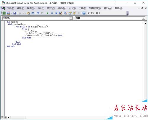 2)For Each c In Range("A1:A12")中"A1:A12"表示加粗文字的范圍