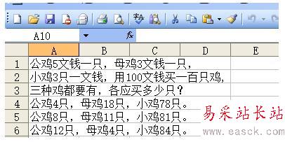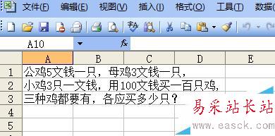 百錢買百雞問題是三元一次方程組可以解決的問題,可以用excel來進行解答。