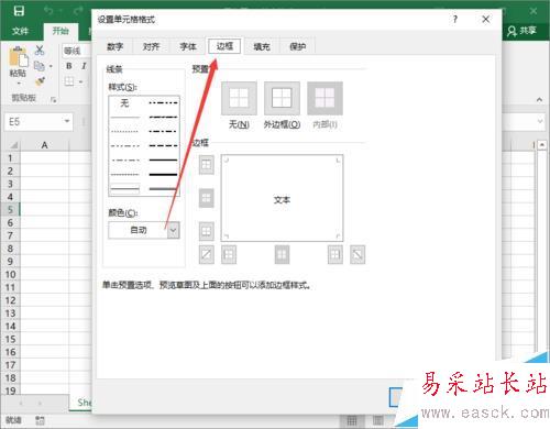 4、在“設置單元格格式”對話框中,選擇“邊框”選項卡。如圖所示;