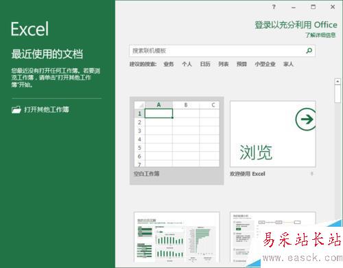 1、鼠標左鍵雙擊計算機桌面Excel2016程序圖標,將其打開運行。在打開的Excel2016程序窗口,點擊“空白工作薄”選項,新建一個空白Excel工作薄。如圖所示;