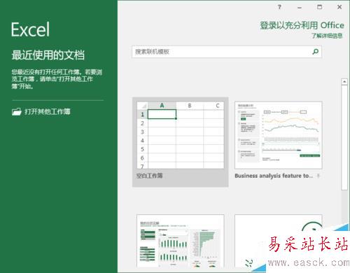 1、鼠標左鍵雙擊計算機桌面Excel2016程序圖標,將其打開運行。在打開的Excel2016程序窗口,點擊“空白工作薄”選項,新建一個空白Excel工作薄。如圖所示;