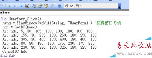 6、雙擊窗體進入編程界面,編寫窗體單擊事件觸發的程序,調用模塊1里聲明的1個結構、4個函數編寫程序。