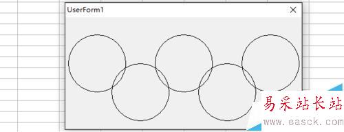 10、單擊窗體,出現五環圖案,這就是窗體單擊事件程序的運行結果。