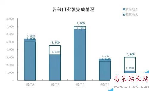 2、選定“預算收入”系列,數據系列格式,在“圖案”選項卡將其內部填充色設為無、在“系列次序”選項卡將預算收入下移排在實際收入后、在“選項”選項卡,將重疊比例設為100%;