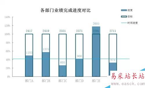 5、同理,依次將其他部門的進度數據標簽和目標數據標簽鏈接到相應單元格;