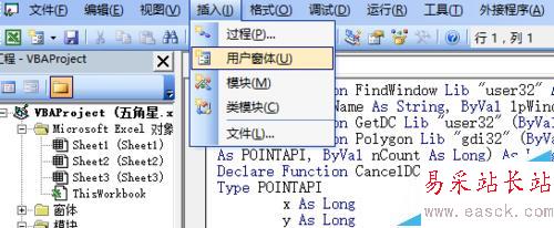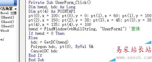 本節目的:利用excel vba編程,在窗體上畫一個五角星。